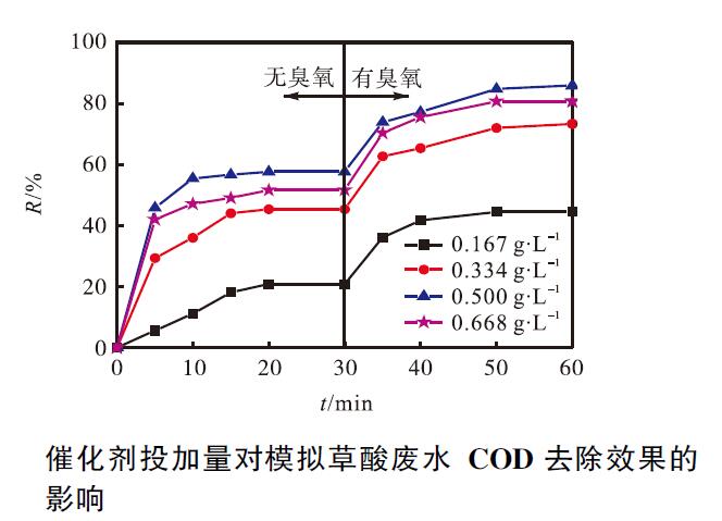 臭氧催化劑投加量對模擬草酸廢水COD 去除效果的影響