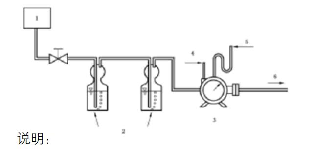 B.2.5.2.1 將臭氧化氣的管道插入到空白洗氣瓶中,使用新鮮的臭氧沖洗管道。然后,將臭氧清洗后的管道與測(cè)定洗氣瓶連接,并立即使用濕式流量計(jì)開(kāi)始記錄體積。