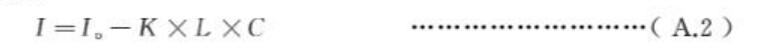臭氧對(duì)波長(zhǎng)λ=254 nm紫外光吸收系數(shù)很大,在此波長(zhǎng)下紫外光通過(guò)臭氧層會(huì)產(chǎn)生衰減,符合朗伯-比爾(Lambert- Beer)定律,見(jiàn)式(A.2):